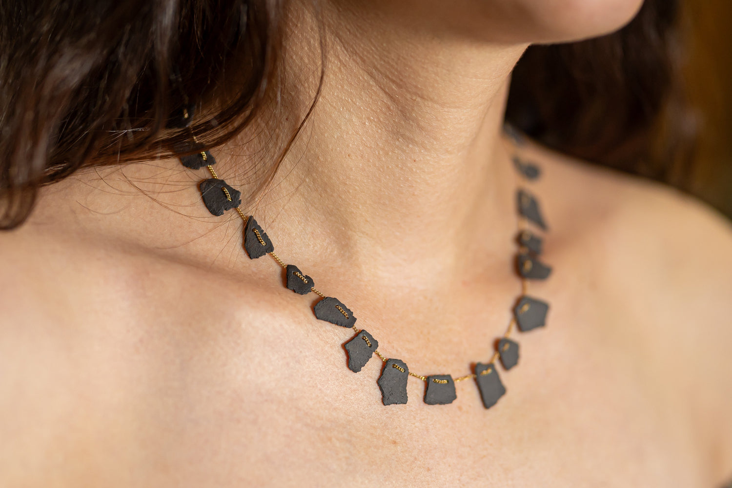 אני יוצרת כל קרע חימר בעבודת יד. מרדדת, קורעת ומעצבת שלכל קרע...