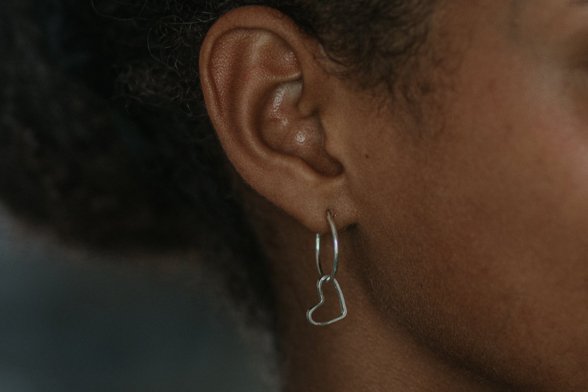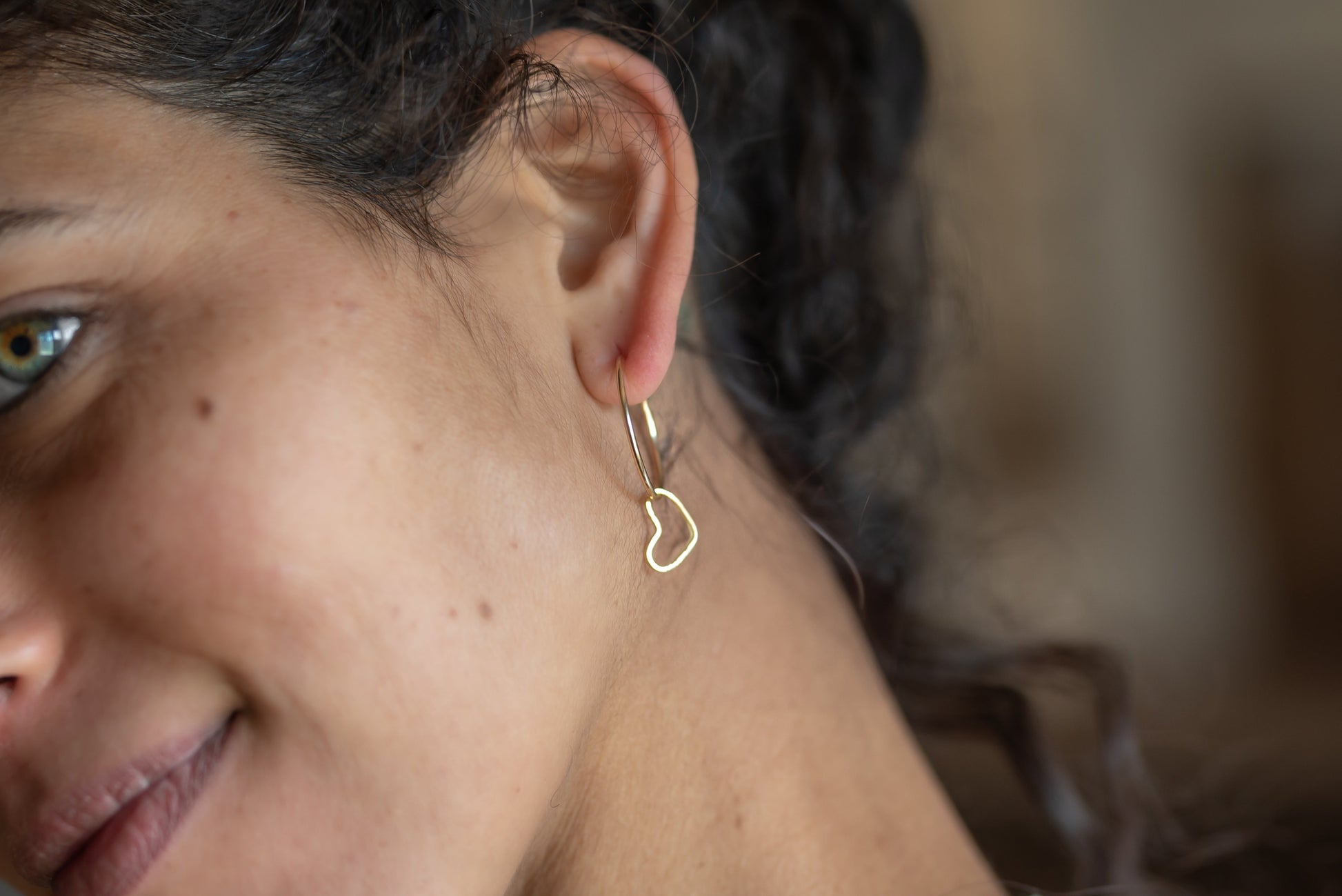 עגילי חישוק עדינים המשלבים חלוק נחל טבעי ותליון כסף בצורת לב עדין. החיבור בין האבן האורגנית למתכת המלוטשת יוצר איזון מושלם בין טבע לרוך, ומספר סיפור של אהבה פשוטה וחיבור עמוק לאדמה.